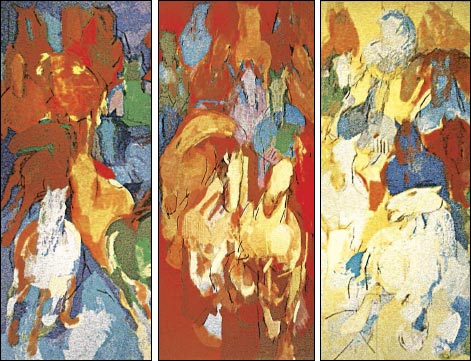 Este tríptico de 3 x (522 x 270) cm, efectuado em 1989 por Júlio Pomar, está no átrio da sede da CGD em Lisboa. Tem o nome de Tropel.